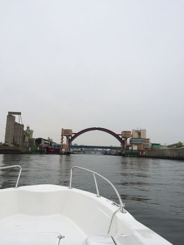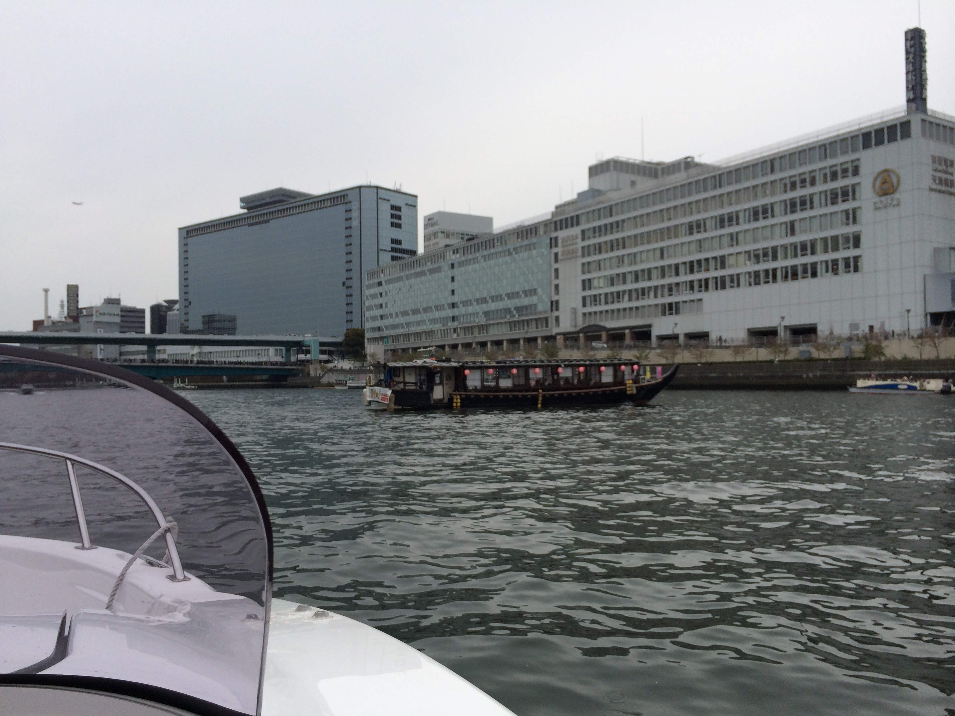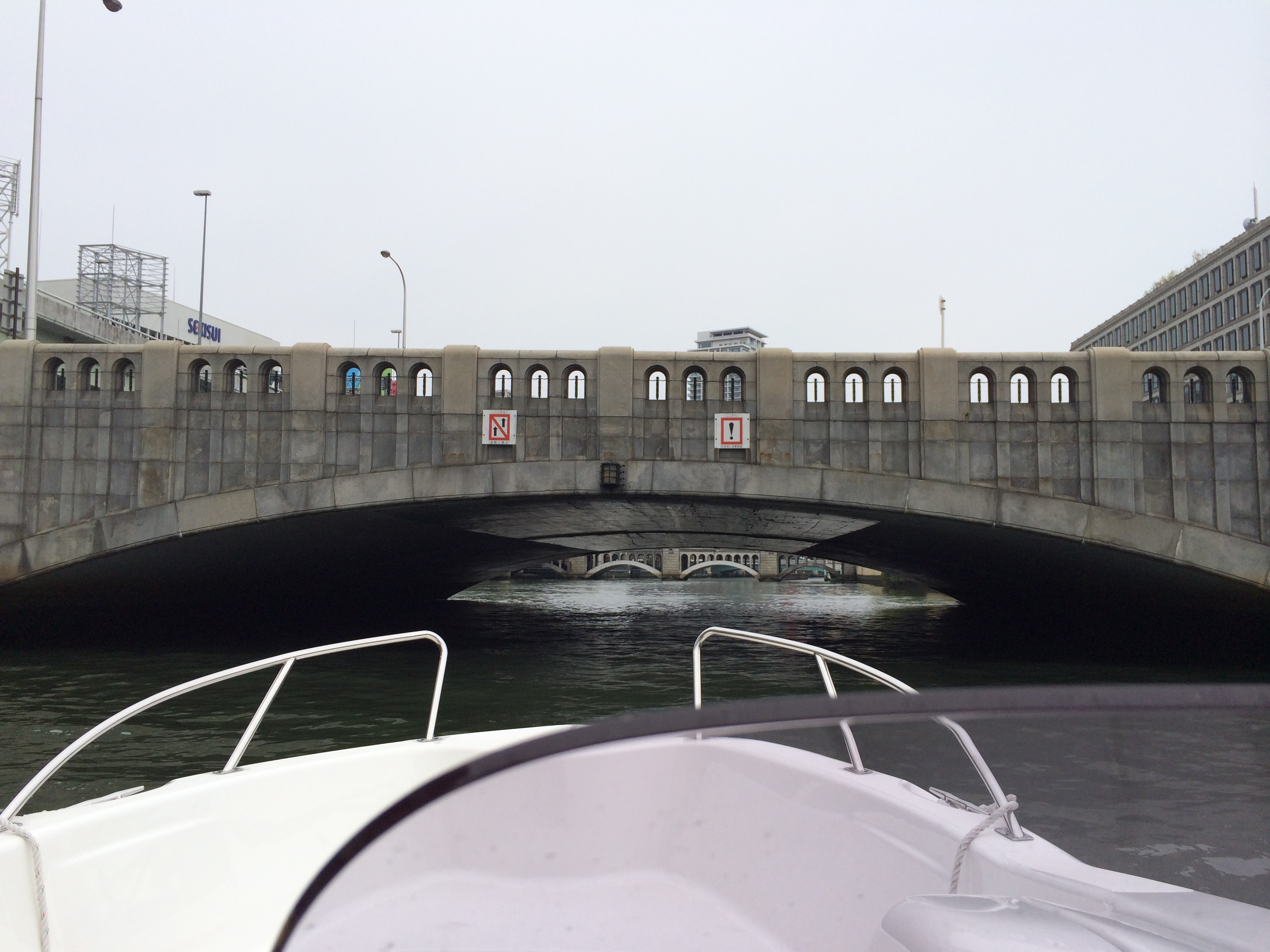 大江橋ははじめとする橋げたをくぐるためにオーニングを外しています!