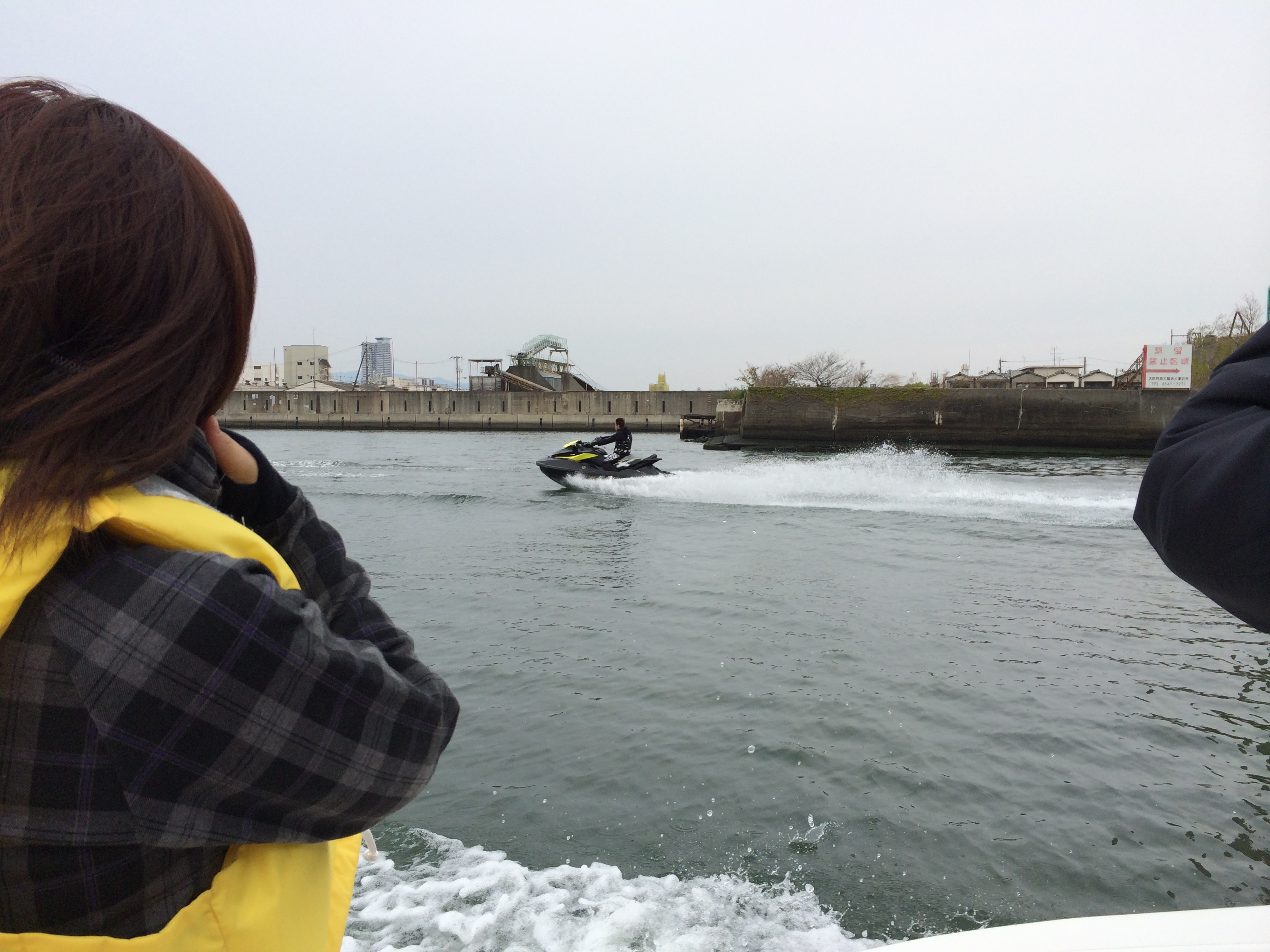 途中、マリンジェットと遭遇しました。やはり、花見でしょうか?
