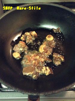 よく熱したフライパンに食用油をひきミックスホルモンを炒めます。
