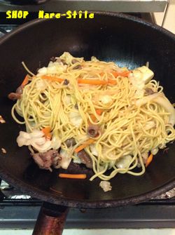 野菜にも火が通ったら焼きそば用そばを入れます。