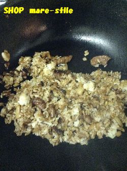 (4)お肉に火が通りだしたらごはんを入れほぐす様に炒めます。