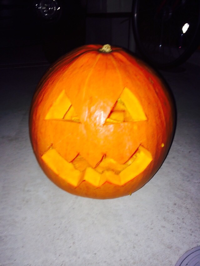 土台にロウソクをのせて火をともしかぼちゃの顔を被せれば完成です!
